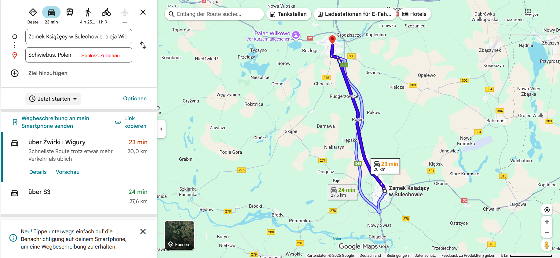 In der Nähe des früheren Schwiebus, dem heutigen Świebodzin, befanden/befinden sich, soweit ich dies herausfinden konnte, drei Schlösser: